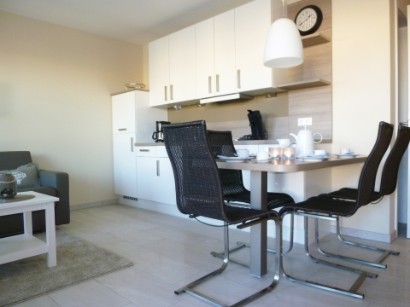Gemütliches Wohn-/Esszimmer mit Samsung LED-Flatscreen, Sony Design-Stereoanlage mit iPod-Dockingstation und Bluetooth, Samsung BluRay-Player.